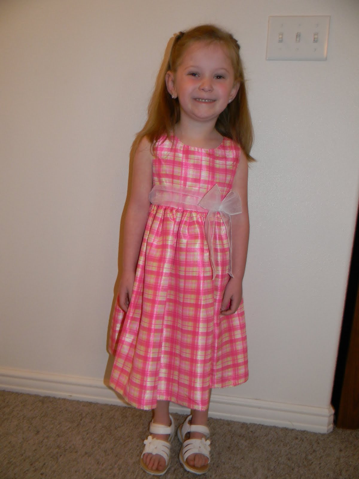 These were going to be the girls' Easter dresses. But we are going to Cosette's baby blessing (Matt's sister, Heidi's, baby) next week in Provo. So I thought they could wear them today. And Oma gave them matching dresses yesterday that they can wear on Easter. So I had to take pictures in these anyway. I think I'm going to try again, though. I still haven't figured out my camera from Christmas and I'm not happy with how they turned out.